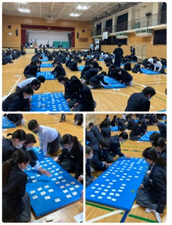 午後、1年生は体育館で百人一首大会を行いました。 伝統文化を子どもたちは楽しみました!