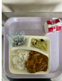 チキンカレーライス ビーンズサラダ ミニフィッシュ 牛乳