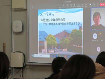本日、午後4時より1年生各教室においてteamsで一泊移住の保護者説明会を行いました。一泊移住は6月14〜15日に貝塚市の大阪府立少年自然の家で行きます。一泊移住の詳しい行程や準備物などの説明をいたしました。