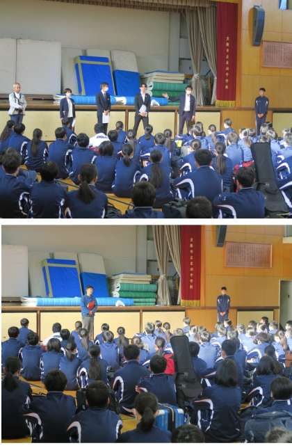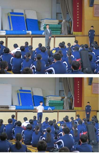 出発式で、生徒代表から、修学旅行を楽しく行うための注意点をしっかりと話してくれました。