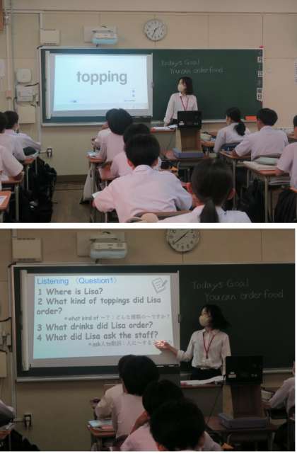 3人の実習生が来ていて、3人目の方の研究授業でした。2年生の英語で、単元は「Daily Life」、飲食店での注文や、店員に何かを依頼する内容について学びます。