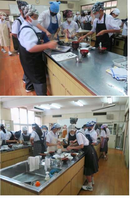 来週は1年生は一泊移住です。家庭科の調理実習で学んだことを活かしてください。