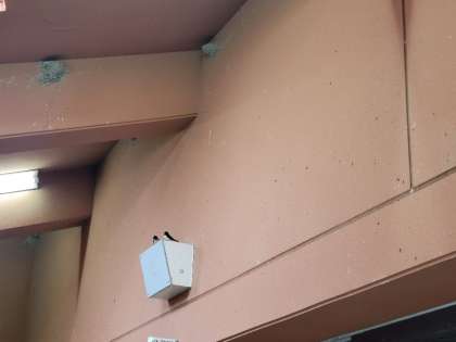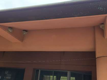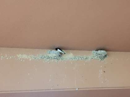 貝塚市の府立少年自然の家の入口、数えたら30個のツバメの巣がありました。