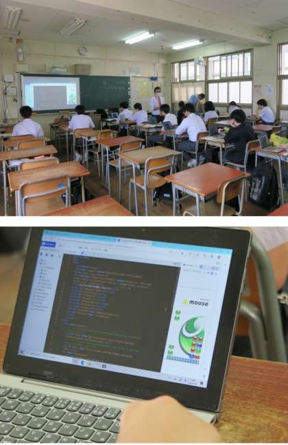 パソコンを使ってプログラミングの授業です。