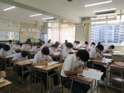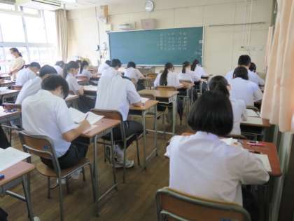 生徒たちは、真剣な表情でテストに取組んでいました。