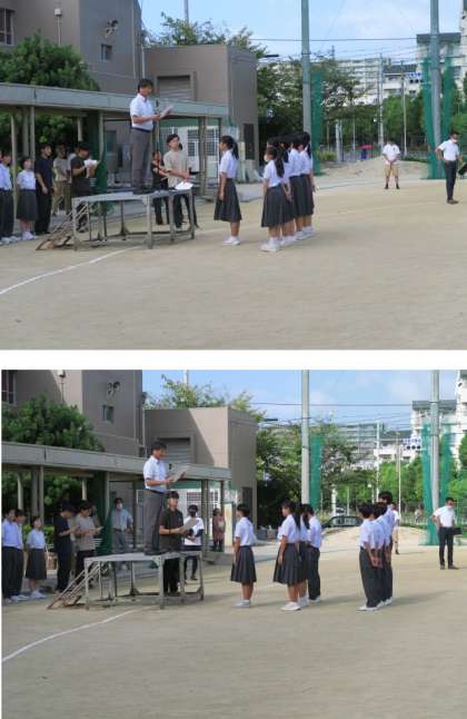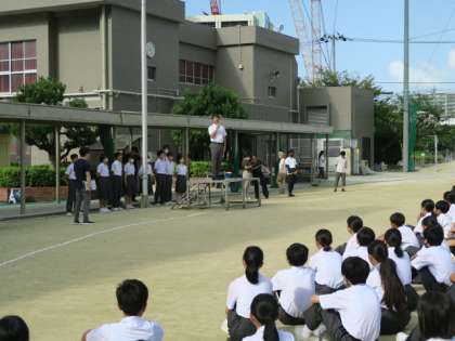 校長先生より、先週の全体練習についてのお話がありました。全体的にはよくできていましたが、ラジオ体操をもう少しよくしていきましょう。まだまだ、みなさんは伸びるところがありあります。体育大会成功に向けて取り組んでいきましょう。