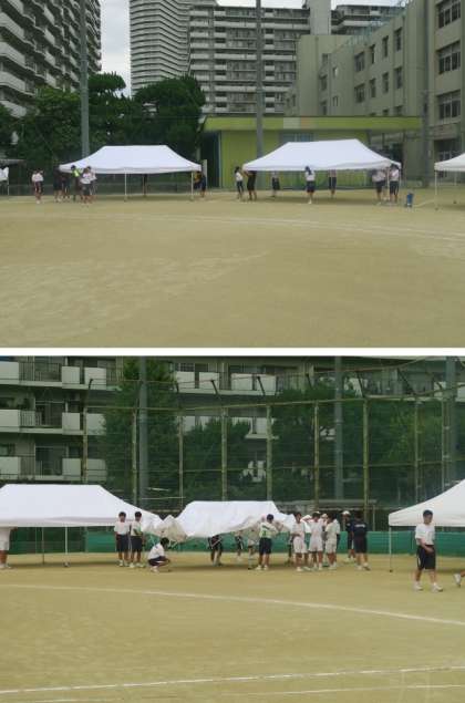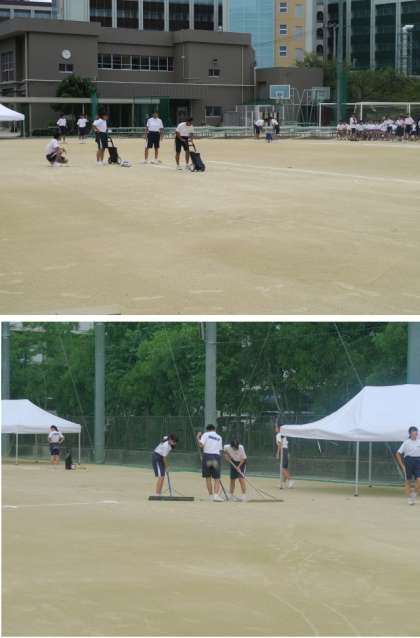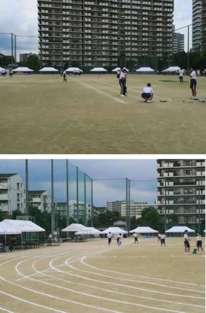 そして、グランド整備、テントの設営、トラックのライン引きなどを行いました。