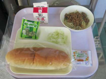 今日の献立は、タンタンめん、あっさりキャベツ、まっ茶大豆です。