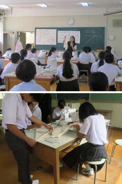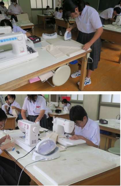 家庭科でミシンを使って、ランチョンマットの製作を行っていました。
