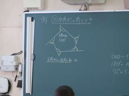 授業の後半は、内角の和と多角形の外角の公式を使って、問題を解いていきました。