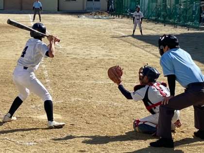 友渕中学校対高倉中学校のブロック大会1回戦は5回の1点を守りぬき、1対0で市大会準優勝の高倉中学校に勝利しました。