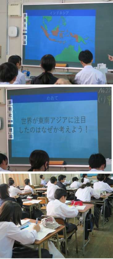 続いて、東南アジアのインドネシアの学習です。東南アジアは、今世界から注目を集めているという話から入りました。