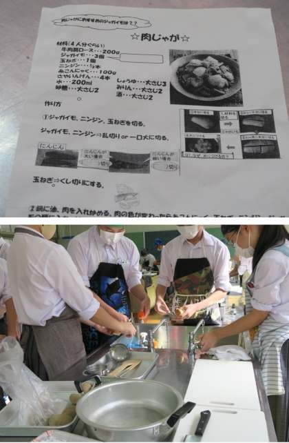 2年生は、家庭科で「肉じゃが」の調理実習を行っています。