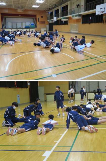 班ごとの準備運動後、班によるシュートの練習を行いました。