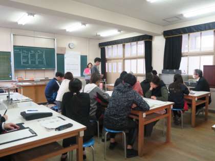 授業終了後は、研究協議を行いました。子どもが主体的に学んだ点などの意見交換を行いました。最後に、教育センターのスクールアドバイザーの先生よりご好評をいただきました。