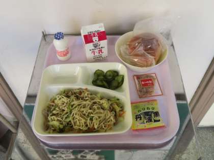 今日の給食は、生徒に人気のある焼きそばです。