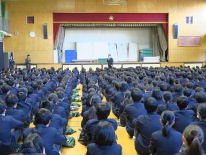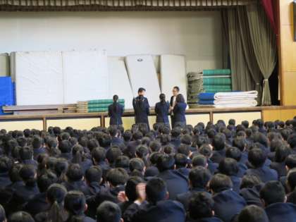 2学期の終業式を体育館で行いました。