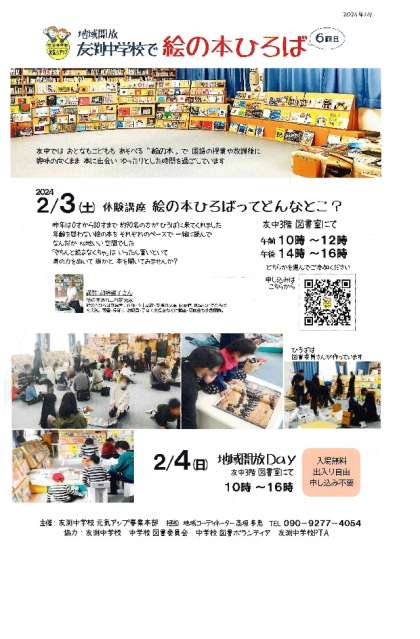 絵の本ひろばを、友渕中学校(3階図書室)で開催いたします。