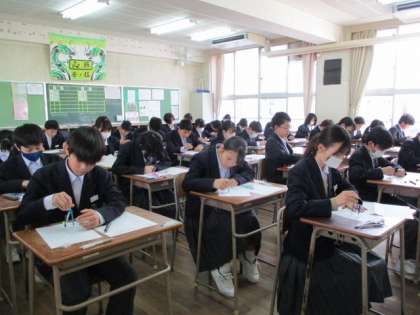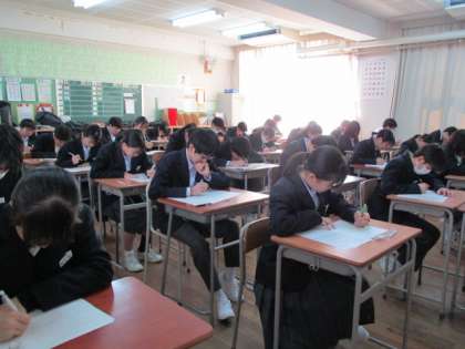 みんな真剣な表情で、答案用紙に向かっています。頑張ってください。