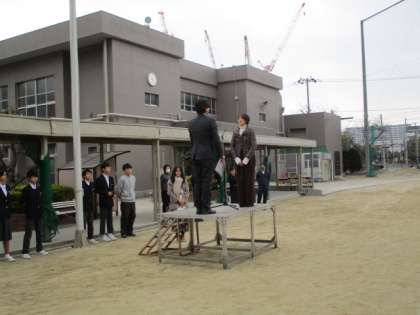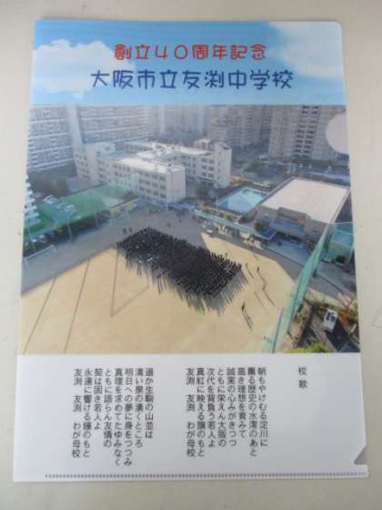 本日の全校集会で、PTAより創立40周年記念品の贈呈式が行われました。記念品の一つは、昨年の12月、全校集会時にドローン撮影した写真をクリアファイルにしたものです。