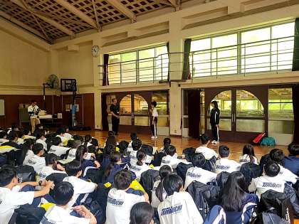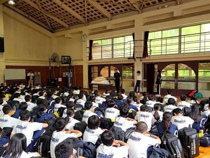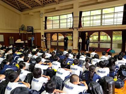 少年自然の家に到着しました。体育館で入所式を行いました。