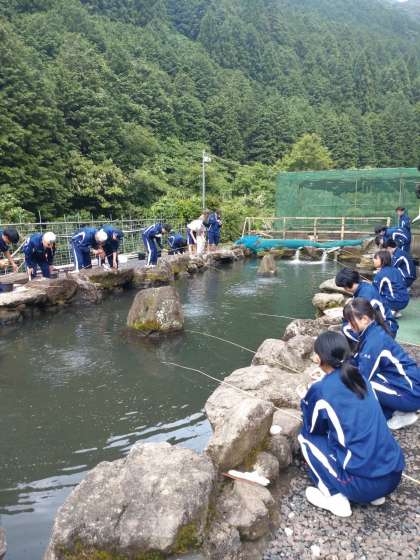 5月27日(月)【3年生 修学旅行1日目】選択別体験〜ヤマメ釣り〜