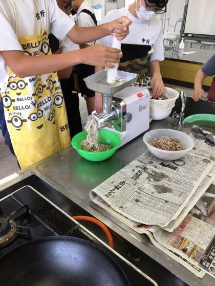 5月27日(月)【3年生 修学旅行1日目】選択別体験〜さつま揚げ作り〜