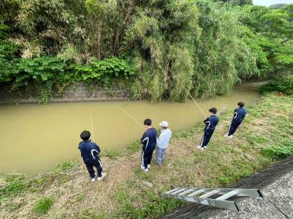 5月27日(月)【3年生 修学旅行1日目】選択別体験〜川釣り〜