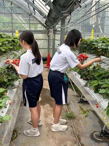 5月27日(月)【3年生 修学旅行1日目】選択別体験〜いちご収穫〜