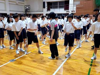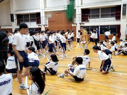 先生とジャンケンし、勝てばの後ろに並んでいくゲームです。