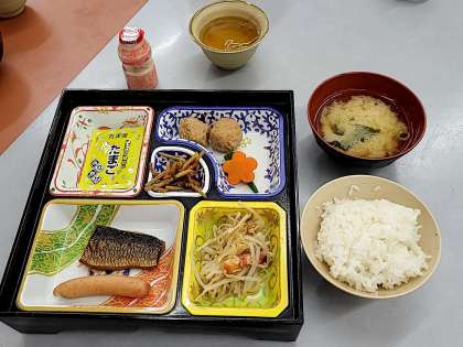 今日の朝御飯は、「ニシンの漬焼き、ウィンナー、煮物、ベーコンとモヤシのナムル、きんぴらごぼう、ヤクルト」です。
