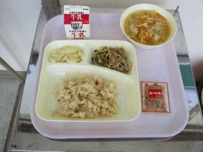 今日の給食も好き嫌いせずに、残さずに給食を美味しくいただきましょう。