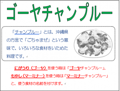 今日の献立は、ゴーヤチャンプルー、かつおぶし、五目汁、あげ焼きじゃがです。