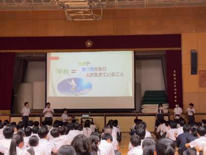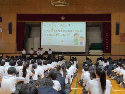 長崎県の被曝の歴史を紹介しつつ、どのような状態が平和であるか、またどのように行動することで平和が実現されるかについて考察し、発表してくれました。
