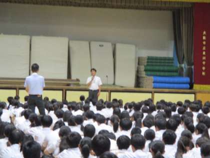 生活指導部の先生より、夏休みの過ごし方として、「SNSなどのトラブルにならないように、十分に考えて過ごすこと。」「外出時には、行先や、帰宅時間などを、保護者の方へ伝える。」というお話がありました。