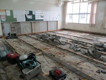 他の教室の床も改修工事を行う必要がありますが、一度にすべての教室の改修工事はできません。来年度も夏休みに教室床の改修工事を予定しています。