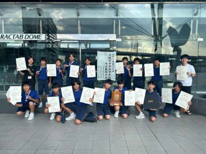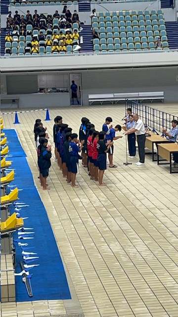 結果は、2年生男子4×100mフリーリレーで1位、1年生男子4×50mフリーリレーで2位でした。また閉会式では、各学年の総合得点が発表され、1年生男子が総合3位、2年生男子が総合1位でした。そして、1.2.3年生を含めた男子総合の部では、見事1位、総合優勝に輝きました。この結果は、本大会が始まって以来57年目の快挙です!!!