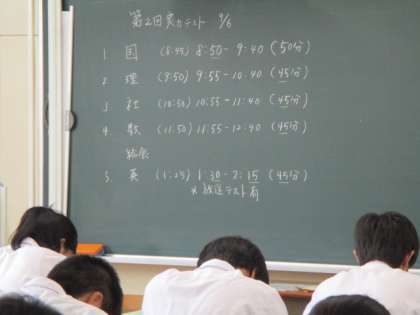 3年生は、3日にチャレンジテストを行い、今日は第2回目の実力テストです。