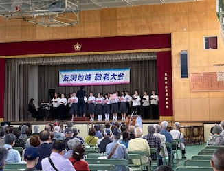 友渕地域の敬老大会が本校の体育館で行われました。