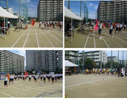 競技の最初の3組ほどのスタート、ゴールの確認をし、あとの組は全員でゴールを目指して走るという流れで行いました。競技だけでなく、開会式、閉会式のプログラムの流れを確認することができました。