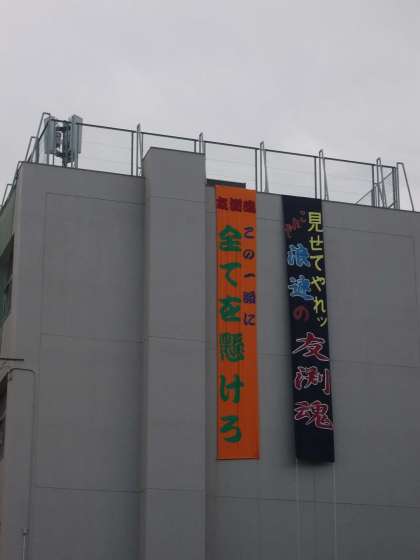 秋晴れのさわやかな天気のもと、本日体育大会が行われます。昨日、そして本日も朝早くから係生徒が準備を行いました。全員席に着き、開始をワクワクしながら待っています。各色団ごとに気合の掛け声合戦も行われました。いよいよ始まります。