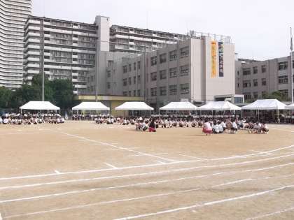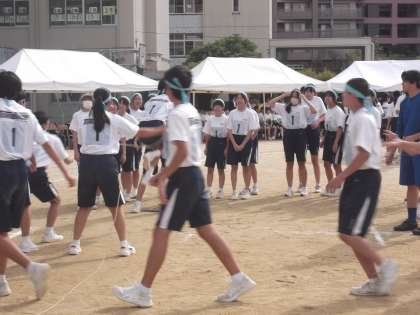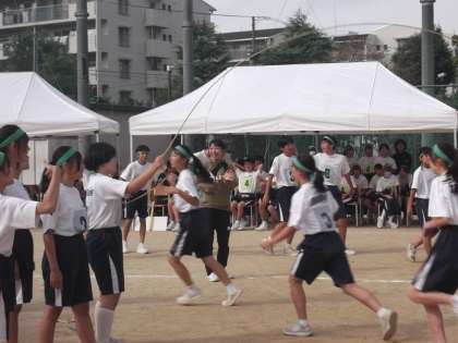 2年生のクラス対抗大縄跳びです。3分30秒を2回とび、多く跳べたほうの数で競います。