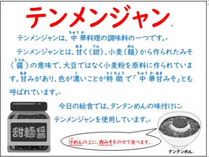 今日の献立は、タンタンめん、あっさりキャベツ、豆こんぶです。