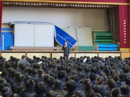 校長先生より、今年は巳年です。ヘビは脱皮して成長していきます。生徒の皆さんも、色々なことに挑戦する1年になるようにとお話がありました。