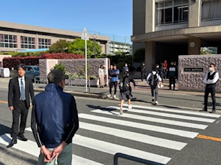本日は、都島区更生保護女性会友渕地区のみなさんが、早朝あいさつ運動に来ていただきました。