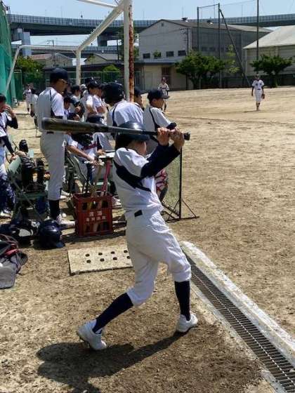 3年生が先発投手を務め、築港中学校打線を0点に抑えて、9-0で勝利しました。