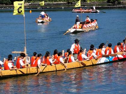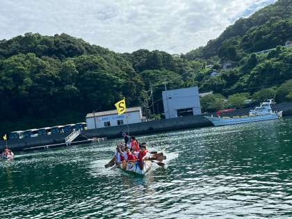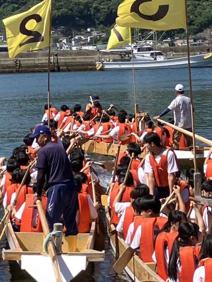 午後からはペーロン体験です。クラスでリズムよく、力を合わせて、手漕ぎ舟のペーロンで競いました。牧島の自然の中でいい思い出ができました。