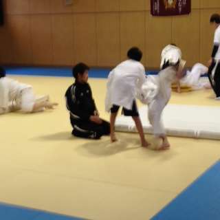 これは柔道部の様子です。1年生が先輩を背負い投げしています。