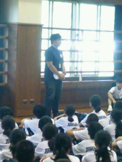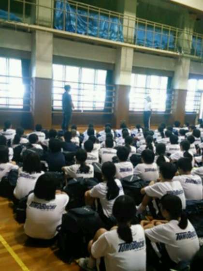 生徒代表のあいさつのあと、施設の方よりオリエンテーションがあり、シーツのたたみかたなどを聞きました。