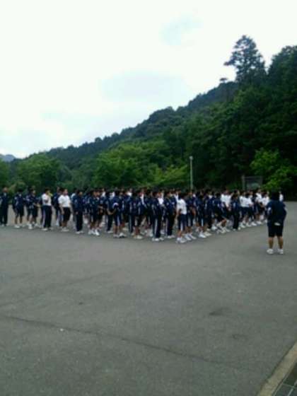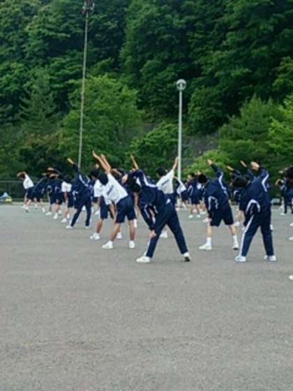 7:15からは『朝のつどい』です。健康チェック、体操のあとは全員で校歌を歌いました。